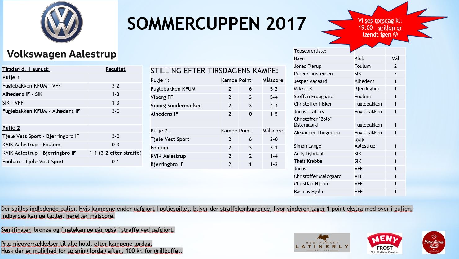 Sommercuppen 2017 - stilling tirsdag